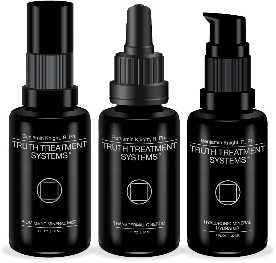 Strategically formulated with Lipophilic Vitamin C, Polyelectrolyte Minerals, Amino Acids and Hyaluronic Acid to deliver only the essential active ingredients cells and collagen need to grow and regenerate. Apply two drops of Transdermal C Serum with two pumps of Hyaluronic Mineral Hydrator and two sprays of Biomimetic Mineral Mist. Blend in your hands and massage into damp skin, resulting in an immediate plumping and glow. With daily use, skin may brighten and fine lines begin to fade. The overall appearance becomes softer, more youthful and healthy looking. This is what we call the Truth Glow.